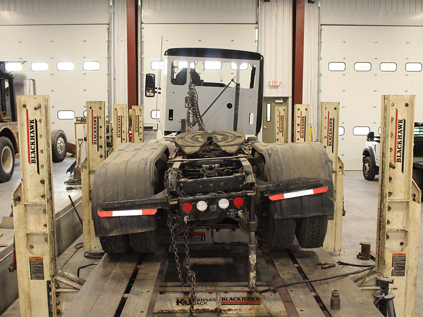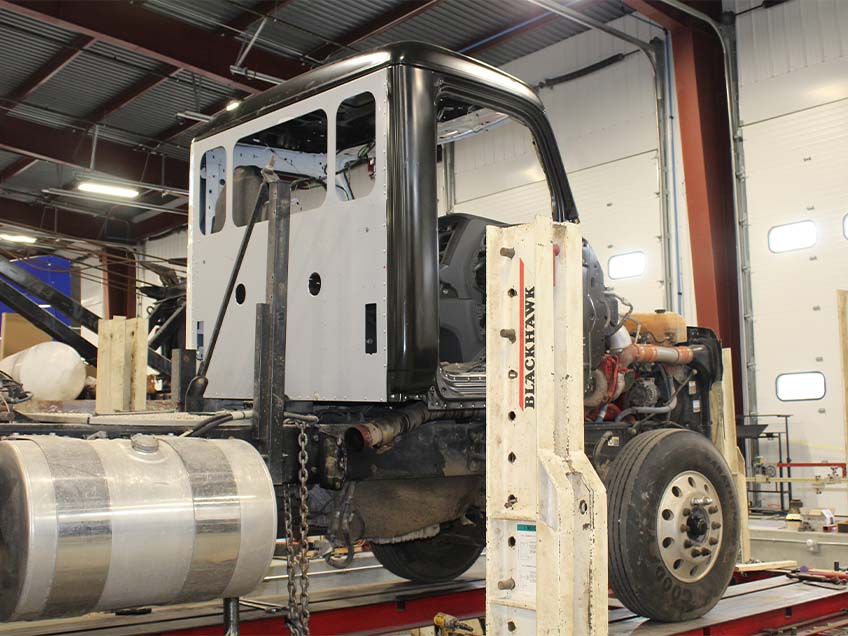Part of what makes Truckstar a full-service repair center is our capability to straighten your truck-frame in-house following an accident. Our 10-point Blackhawk Power Cage system uses 300 tons of pulling power allowing us to repair damaged frame rails that most other shops can’t. The drive-on runways at floor level accommodate the loading of damaged vehicles easily and frame pit setup makes for convenient access all the way around. Using frame gauges and lasers, we are able to setup and measure the damaged vehicle efficiently and pinpoint the conditions that need correction.